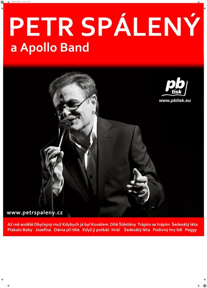 Petr Spálený se hudbě věnuje profesionálně od roku 1967, kdy přijal nabídku Jiřího Štaidla na angažmá v tehdejším hudebním divadle Apollo. V témže roce vychází jeho první gramofonová deska. Starší nahrávky Petra Spáleného jsou vydávány na labelech firem Supraphon, Bonton, Popron, Apollo Records Comp, Multisonic, Presston. a Readers Digest. Koncertoval a nahrával s Apollobeatem, později skupinou Apollo nepřetržitě 20 let (1967 — 1987). Existují však i nahrávky s velkými orchestry (TOČR, Orchestr Karla Vlacha). V letech 1987 — 1992 skládá hudbu pro všechna představení Divadla Jiřího Grossmanna, kde také vystupoval. Psal hudbu do TV pořadů DJG „Zajíc v pytli". Pro divadlo E. F. Buriana složil hudbu k inscenaci „Šatra“. Na konci roku 1995 se Petr Spálený znovu vrátil na koncertní pódia s novou skupinou Apollo a Miluškou Voborníkovou. Od roku 2001 koncertuje s kapelou Apollo Band. VSTUPENKU LZE ZAKOUPIT TAKÉ PŘES e vstupenky . V den akce prodej POUZE v pokladně divadla.DALŠÍ INFORMACE: